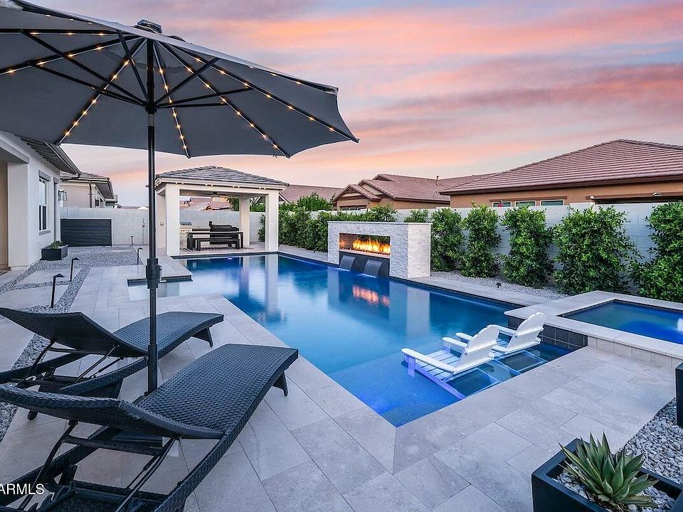 But the real magic awaits outside. This MULTIPLE award-winning backyard was designed for those who love to entertain. A spectacular 21,800-gallon PebbleTec pool and spa with a Baja shelf and in-floor cleaning system set the stage for relaxation. Gather under the expansive 14' x 14' gazebo, fire up the natural gas grill, and enjoy the ambiance of the custom gas fireplace and waterfall all illuminated by artfully designed accent lighting.