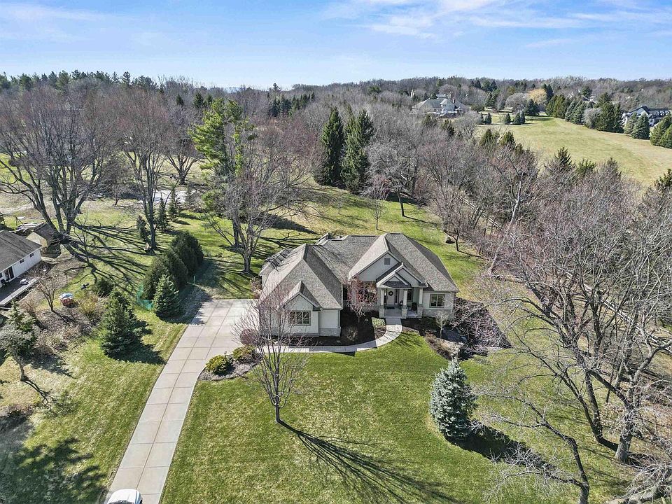 Show 4/4. Welcome to your dream home nestled on a sprawling 1+ acre wooded lot, where luxury meets tranquility. You'll be greeted by the elegance of a floor-to-ceiling stone fireplace, formal dining, & kitchen adorned w/rich cabinetry, quartz/granite tops & stunning tile backsplash. Retreat to the primary suite boasting tray ceilings, WIC w/custom shelves & ensuite w/luxurious walk-in shower. 2 add'l bedrooms & full bath ensure ample space for all. Entertain in style in the LL, where there is a cozy family rm w/gas FP, wet bar, add'l bedroom & den/office. The allure continues w/a 3-season porch & concrete patio, perfect for enjoying the serene surroundings. This meticulously maintained home & landscape is complemented by an irrigation system, att'd 3-car garage & fresh paint throughout.
