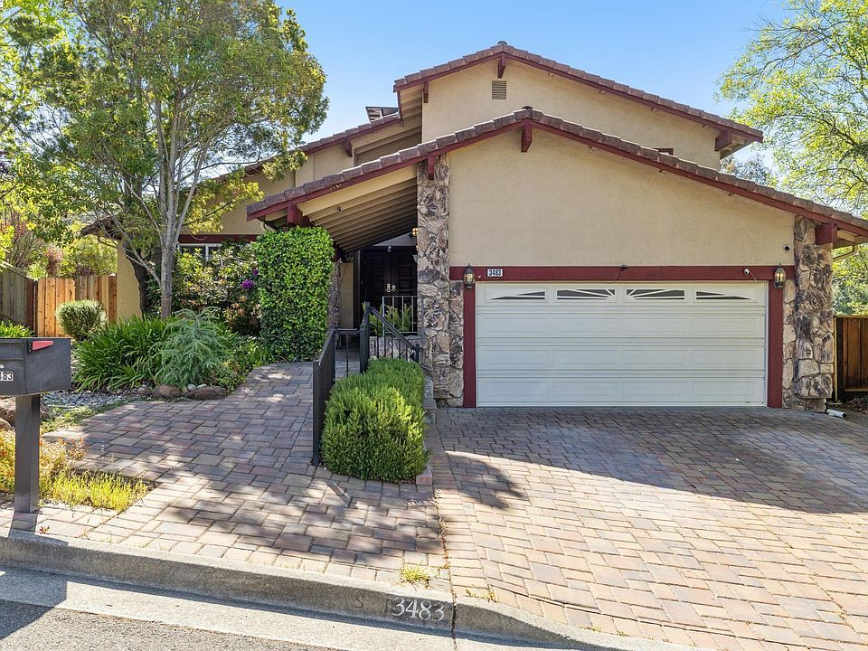 Nestled in the peaceful Hayward Highlands, this beautifully updated split-level home, with no rear neighbors and a stunning canyon backdrop, invites you to relax and unwind in your own private retreat. Step inside to soaring vaulted ceilings and expansive picture windows that flood the living space with natural light. The formal living room flows effortlessly into the dining area, which opens to a sunroom, leading to the upper deck with sweeping canyon views. The updated kitchen features stone countertops, stainless steel appliances, and warm wood cabinetry, perfectly designed for the home chef. Fresh interior paint and brand new carpet throughout create a move-in-ready feel. The lower level offers flexibility and privacy, complete with a bedroom and full bath, a laundry room, a cozy family room with a brick fireplace, and a wet bar that opens to the spacious backyard deck. Upstairs, the primary suite boasts a charming bay window overlooking the lush canyon, along with an updated en suite bathroom with a walk-in shower and a bidet. Two additional bedrooms and a full hall bath complete this level. Other highlights include a paver driveway, solar panels, and a low-maintenance front yard with mature landscaping.