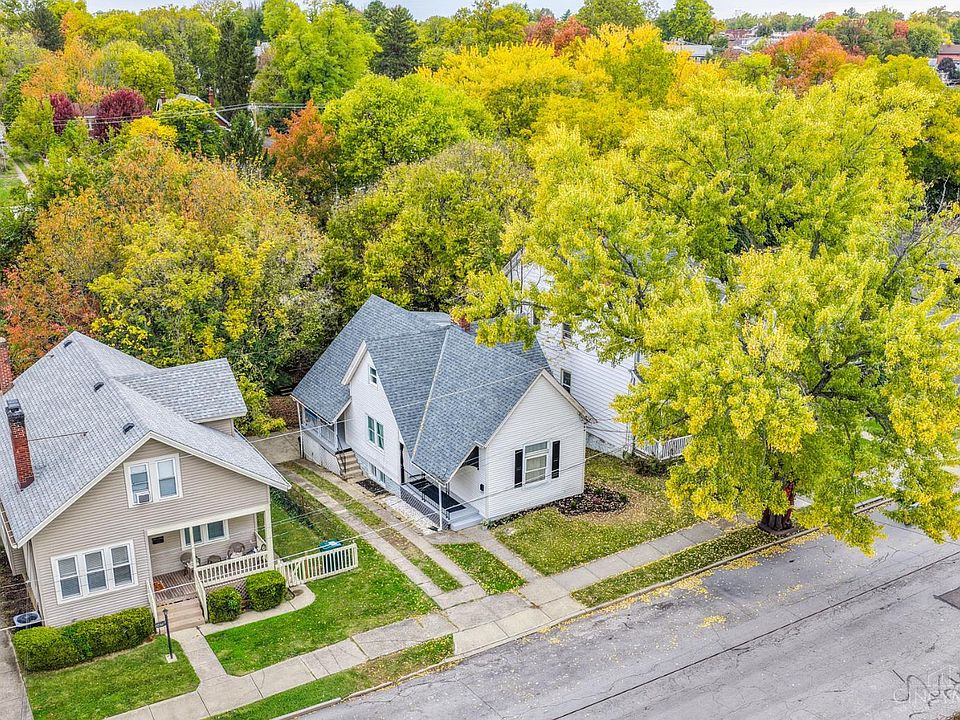 Amazing location! This beautiful home with updates is conveniently located near restaurants, brewery, coffee shop, library, and town hall! Freshly painted interior. Newer Kitchen with subway tile, new dishwasher, and a pantry. Bright Living Room with high ceilings and chandelier. Refinished hardwood floors. Large Primary Bedroom with decorative fireplace. Spacious Home Office on first floor. Newer Full Bath with tile tub/shower. Flexible space on 2nd floor for Bedrooms, Family Room, Fitness Room. New Roof 2024 (full tear off). Driveway parking. Several outdoor spaces include covered side porch, patio, and deck plus fenced yard. Great location and nice room sizes!