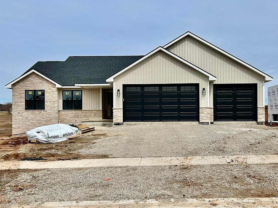 This beautifully designed 1,878 sq. ft. home seamlessly blends modern elegance w/ everyday functionality. The open-concept layout invites you into a spacious great room flooded w/natural light, flowing effortlessly into the dining area & chef-inspired kitchen—perfect for entertaining or quiet nights at home. 3 generously sized bedrooms offer comfort & privacy, including a luxurious primary suite w/ WIC & spa-like ensuite bath. A versatile 2.5 bathroom layout ensures convenience for both residents & guests. The attached 3+ stall garage provides ample space for vehicles, hobbies, or storage, while the covered back patio extends your living space outdoors—ideal for morning coffee or evening gatherings. Every detail of this home is thoughtfully crafted for comfort, style, & effortless living.