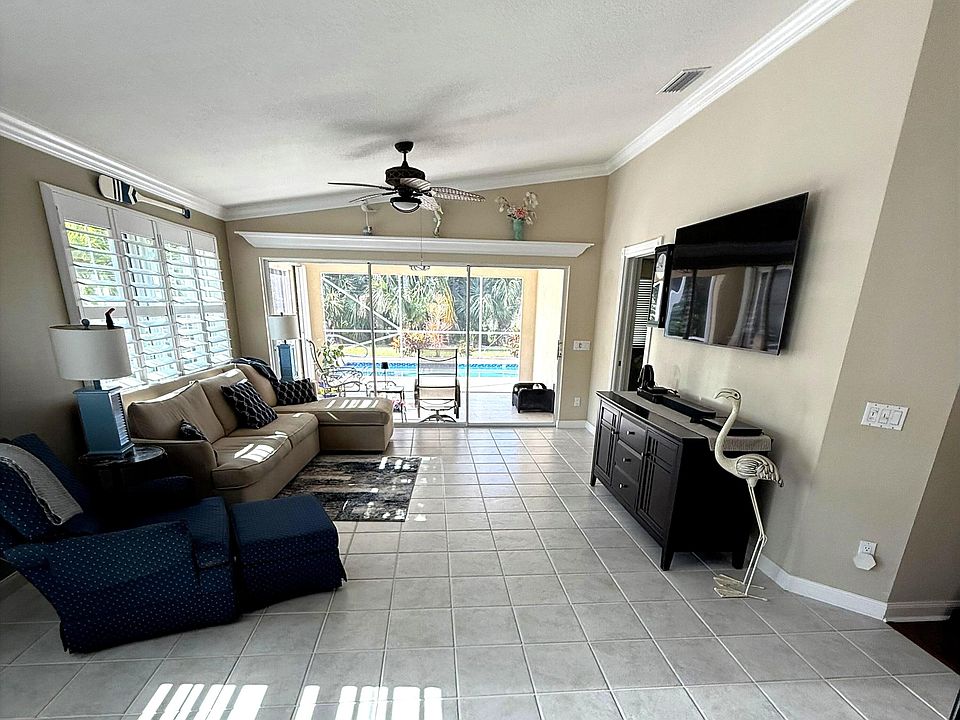 Saltwater conversionGranite countersNew roofResurfaced heated poolHurricane impact windowsPlantation shuttersCrown molding