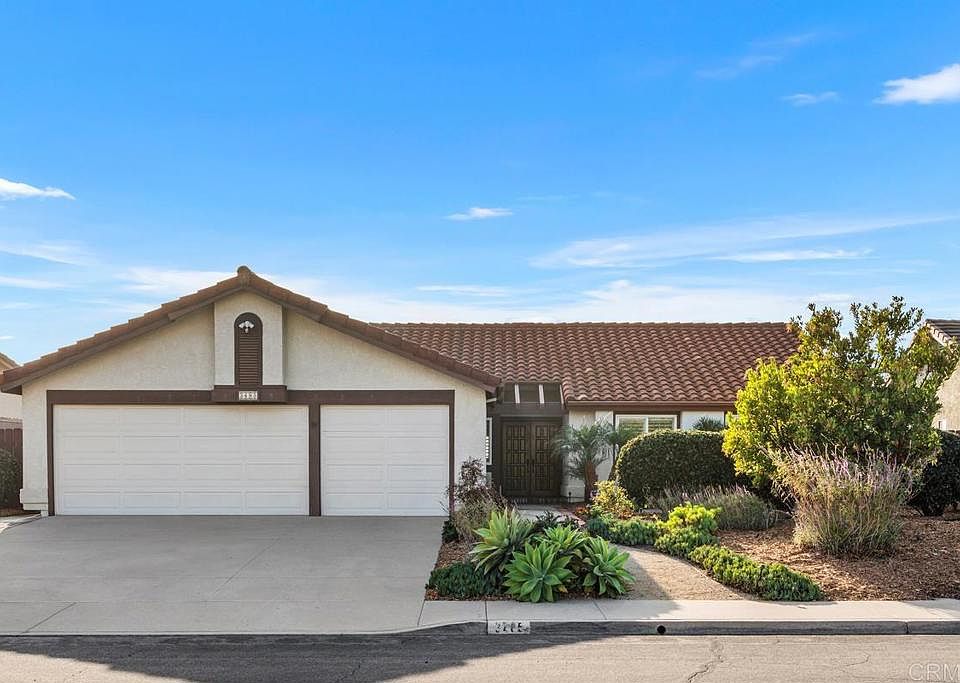 Enjoy this beautiful, spacious light and bright single level home, with high vaulted ceilings conveniently located in Spinnaker Point one of Carlsbads most popular neighborhoods. No Homeowners Association, no HOA fees, and no Mello-Roos. The 3 bedroom, 2 bathroom, 3 car garage home has been expanded with a bonus room suitable for home office or game room or use your imagination. This home is absolutely move-in-ready with a freshly painted interior, new carpeting, and recently updated primary bathroom. Custom window treatments throughout finish off the interior spaces. The front entry courtyard has been thoughtfully designed with Satillo tile, fountain, drought tolerent landscaping, lemon and orange trees, with irrigation controlled with automated Racio system. Enjoy wonderful sit down views of Carlsbad with horizon ocean views to the north and south. The rear yard offers a recently built outdoor entertaining space with covered patio, skylights, space heater, and tile flooring. Spacious rear yard grass area ideal for kids and pets.
