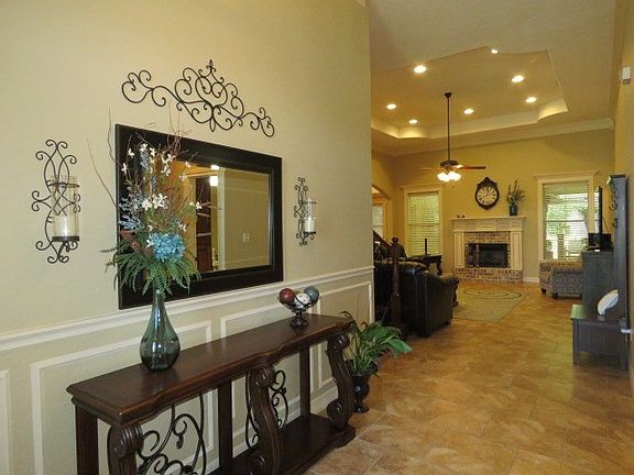 Better than New in Willow Creek Country Club Estates!! This expansive home is in pristine condition. Step inside to revel in luxury amongst tall, trey ceilings, tile floors, plush carpets, granite countertops, inset lighting, and seven walk-in closets. Fit for even the most avid chef - the kitchen boasts a walk-in pantry, massive kitchen island, ample cabinet space, granite countertops, and is open to both the living and dining room. Full of large windows with custom blinds, high ceilings, and an open concept flow-this home invites an atmosphere of ease. Venture outside to enjoy your extra large covered patio, perfect for entertaining. Backed up to a wooded area and equipped with iron fencing in rear - you will be able to enjoy the view without the hustle and bustle of the city while still being just a short drive away from fine dining, shopping, and movies. Garage is oversized with 600 Sq.ft. to fit your truck and toys. Finished out bonus room can be 4th BR or game room. Never flooded.