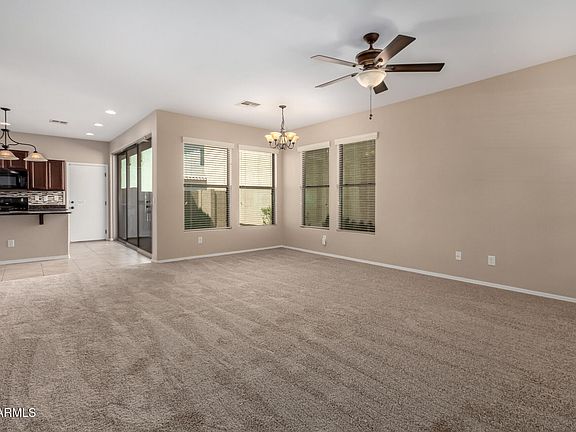 Welcome to this charming 4BR, 3BA home nestled in the highly sought-after Power Ranch community. This 2,182 sq. ft. residence offers a perfect blend of comfort and style. Upon entering, you'll be greeted by a spacious living area adorned with neutral paint and brand-new carpeting. The open-concept kitchen boasts granite countertops, a tile backsplash, ample cabinetry, and a central island with a breakfast bar, making it ideal for both casual meals and entertaining. New dishwasher. The home's thoughtful layout includes a convenient downstairs bedroom and full bathroom, perfect for guests or multi-generational living. Upstairs, a generous loft provides additional living space, while the master suite features dual sinks and a sizable walk-in closet. Outdoor living is equally impressive, with a wall of glass off the kitchen opening to an extended paved seating area, perfect for enjoying Arizona's beautiful weather. New AC system a year ago. Residents of Power Ranch enjoy access to a host of community amenities, including heated pools and spas, tennis courts, biking and walking paths, a clubhouse, and a lake. Located within the highly-rated Higley Unified School District. Don't miss the opportunity to make this exceptional property your new home.