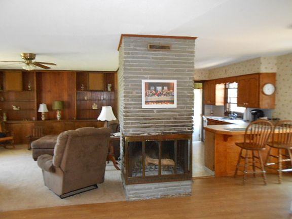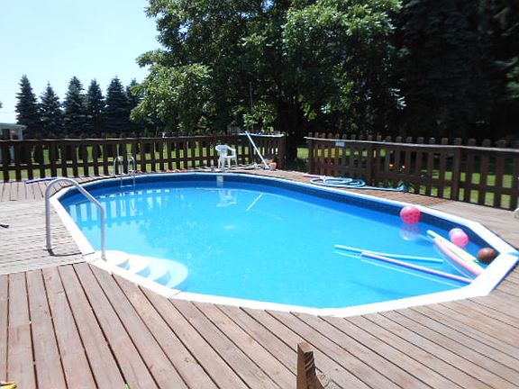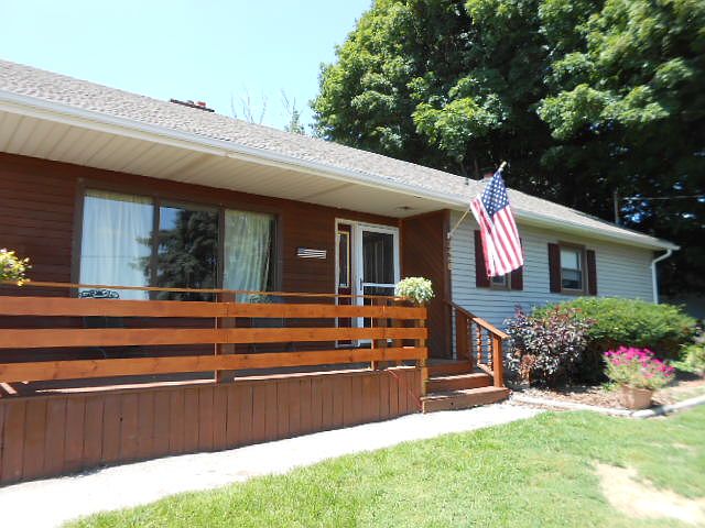 very nice ranch with addition for master bedroom with full bath and patio doors to deck and pool 2 large bedrooms with newly redone bat with shower and garden tub, separate room over garage with full bath could be extra bedroom, nice kitchen and dining large cozy living room with great view of land and can see Silver Lake full basement with laundry and large family room with fireplace large above ground pool and deck