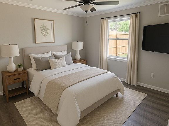 Large peninsulaModern vanityBright white shaker cabinetryLuxury finishesPrivate fully fenced backyardOpen-concept designElegant crown molding