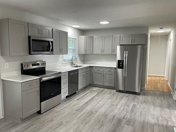 Refinished hardwoodsRenovated brick ranchTwo sheds in rearLvp flooringStainless-steel appliancesQuartz countertopsBrand new cabinets