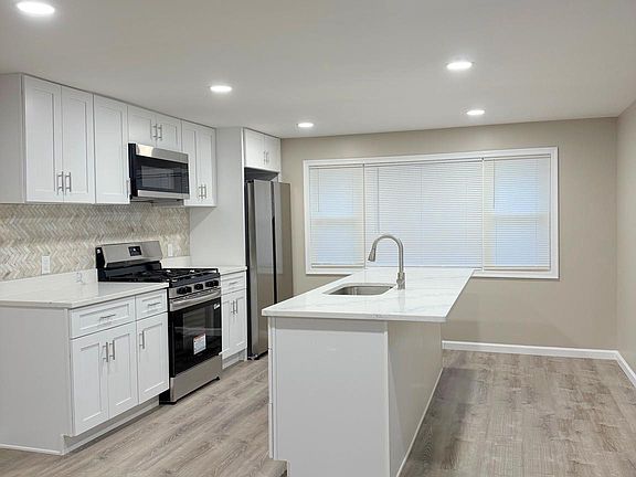 Spacious kitchenStylish double sink vanityLuxurious granite countertopsSleek stainless steel appliancesBrand-new flooringBright open-concept living space