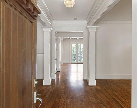 Expansive islandRich hardwood floorsCozy sitting areaTop-tier stainless steel appliancesCustom walk-in closetsGourmet kitchenPrivate covered porch