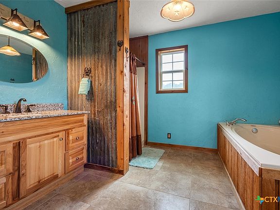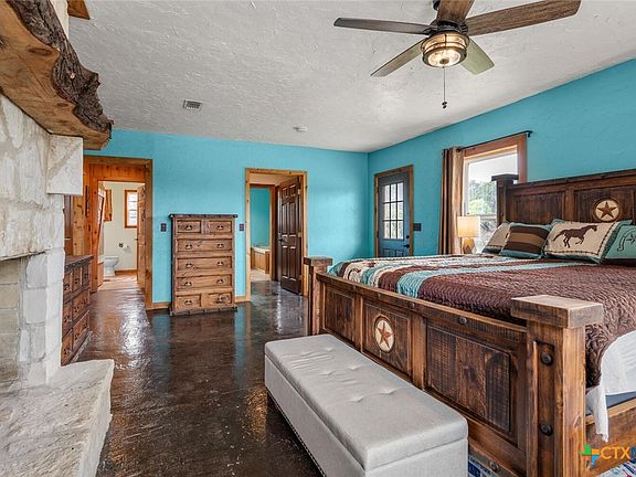 Experience the perfect blend of rustic charm and modern comfort at this stunning 23-acre Gentlemen's Ranch in Spring Branch, Texas. Set on 23.09 acres of beautiful Hill Country landscape, this 2,447-square-foot home offers an ideal retreat for those seeking space, privacy, and recreational amenities. Key Features: 3 spacious bedrooms and 2.5 bathrooms, including a primary suite with a two-way fireplace and breathtaking sunrise views to the east. Open-concept living area with a cozy, rustic vibe throughout. Gourmet kitchen featuring a large island with a bar sink, stainless fridge (2021), propane oven/range, and a perfect spot to enjoy your morning coffee while watching the sunrise. Energy-efficient upgrades, including an on-demand water heater (2022) and a new water pump (2022). Water filtration system (2022) and Starlink rooftop internet for modern connectivity. Multiple living and entertaining spaces inside and out. Exterior highlights include stone and corrugated metal siding, a durable metal roof (2020), upper and covered lower patios, and mature oak trees. Outdoor amenities for the enthusiast: three deer stands, two feeders, shooting ranges, game pen, horse stables, and negotiable equipment such as a ranch truck, riding mower, push mower, trimmer, and blower. This private neighborhood has access via a shared easement, with additional direct access to the Guadalupe for recreational activities such as fishing, tubing, and kayaking. Furnishings, Americana artwork, and select outdoor equipment are negotiable, offering a turnkey opportunity for the right buyer. Local favorites: Screaming Goat for dinner, Bourbon and Branch for cocktails, or check out the newly opened The Desert Spoon (weekend brunch, lunch, & dinner). This property is truly a rare find - offering expansive acreage, thoughtful upgrades, and a lifestyle that celebrates both comfort and the great outdoors. Schedule your private tour today and discover everything 3487 Rust has to offer!