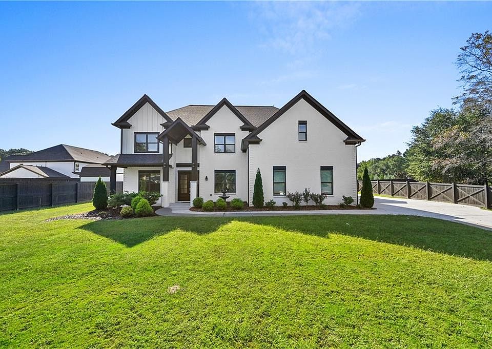 Luxury 5BR/4.5BA Modern Farmhouse in Buford! This stunning custom-built 4-sided brick home offers timeless elegance with hardwood floors, detailed trim, and an open-concept design perfect for entertaining. The chef’s kitchen boasts quartz countertops, a large island, and flows seamlessly into the wood-beamed great room. The main level features a guest suite, private office, and formal dining, while upstairs you’ll find an oversized primary suite with a spa-inspired bath including marble floors, soaking tub, double vanities, and a massive walk-in shower, plus a huge closet and additional media/family room. Three spacious secondary bedrooms complete the upper level. Conveniently located minutes from the Mall of GA, Top Golf, parks, dining, and I-85, in the desirable Seckinger High School district—with no HOA!