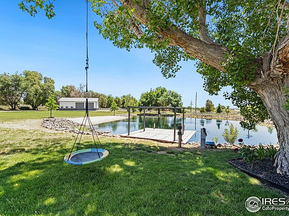 Rare opportunity to own 2.3 acres with premier I-25 frontage and exceptional access, all while maintaining an impressive level of privacy. Mature trees and natural landscaping create a secluded setting that feels far removed from the road, offering a unique blend of visibility, convenience, and tranquility. The property features a 3/4-acre stocked pond complete with a dock and sandy beach, providing an ideal space for fishing, relaxing, or enjoying outdoor gatherings. The pond and surrounding grounds create a peaceful, park-like environment well suited for recreational use or future vision. A recently constructed 40' x 60' shop offers outstanding utility and flexibility. The building includes two 14' x 14' overhead doors, an additional 10' x 12' overhead door, and a large extended concrete pad, allowing for easy access and storage of vehicles, equipment, trailers, or recreational toys. The sale includes 1.5 shares of Lake Canal water rights, adding long-term value. Icing on the cake? It's zoned RPD so there are many uses available! This versatile property is ideal for a weekend retreat, recreational use, or an accessible storage and use site with quick connectivity to Northern Colorado communities. With its rare combination of frontage, privacy, water features, and infrastructure already in place, this property presents a unique opportunity in an increasingly limited market.