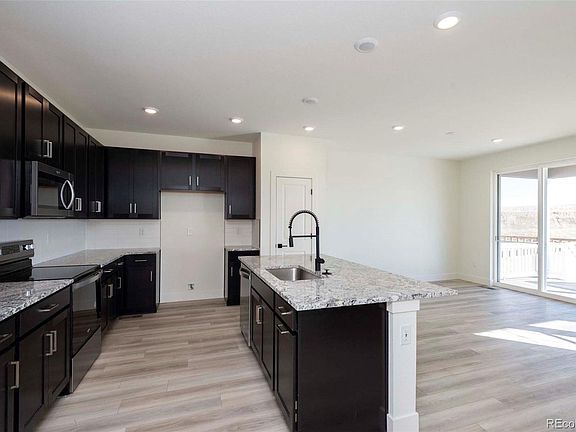 Welcome to Sweetgrass living at its finest! This stunning 3-bedroom, 2.5-bathroom KB Home boasts contemporary elegance and thoughtful design elements throughout. Step inside to discover an inviting, open floor plan that seamlessly blends functionality with style. The spacious living area features a cozy fireplace, perfect for gathering with family and friends on chilly evenings, and effortlessly connects to the open kitchen. There you’ll find sleek black cabinets, granite countertops, stainless steel appliances, and ample storage. Whether you're whipping up a quick breakfast or hosting a dinner party, this kitchen is sure to impress even the most discerning chefs. After dinner, escape to the master suite, where relaxation awaits. Wind down from the day in the en suite bathroom, featuring dual sinks and a spacious walk-in shower with a bench-seat. Two additional bedrooms provide plenty of space for guests, a home office, or a growing family. Outside, you'll find a covered deck, perfect for enjoying your morning coffee or alfresco dining year-round. Downstairs, an unfinished basement provides endless possibilities for storage and/or future expansion – create the ultimate entertainment space, a home gym, or additional bedrooms. Just a short walk-away from the community pool and park, this gorgeous home is sure to delight. Don't miss your chance to make this home your own – call today to schedule an appointment! The Listing Team represents builder/seller as a Transaction Broker.