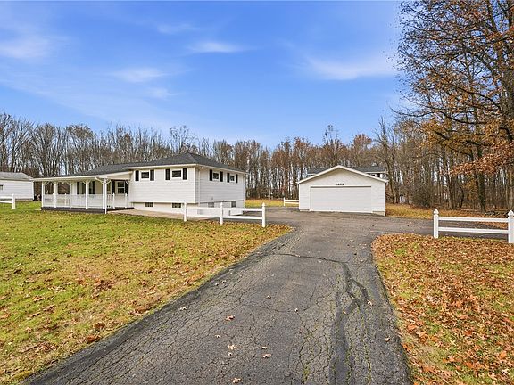Welcome home, to this raised ranch nestled on 7 acres in Hermitage. Welcome guests on the charming, covered porch which leads to the kitchen/living room area of the home. The home has 3/4 bedrooms with one main bath. One bedroom could be an office. The basement is partial with 1/2 being crawl space and an outside entrance for easy access. The basement has laundry, shower, and plumbing for a bath. There is a 2-car detached garage (with electric) and a 3rd tall garage behind for a camper, RV, workshop or storage. The home has a side lot of 5 flat acres that is being sold with the home. The home has a new roof in 2025, public sewer and well water. If you're looking for a home with acreage in Hermitage, this is it!