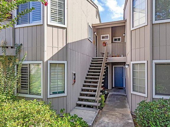 Welcome to this highly sought after Bascom Vineyards Community nestled just minutes from freeway access, shopping, restaurants, walking trails, parks, downtown Campell, and Los Gatos. This airy, sun-filled home boasts wood floors and high-quality French shutters throughout. A newly remodeled primary bath includes a new vanity, floor and porcelain stall shower with glass accents. The beautifully updated kitchen pops with solid wood cabinets, granite counters, glass backsplash, and a gas cooktop. New flooring and fixtures in the hall bath. Enjoy winter evenings by the fireplace in a vaulted ceiling living room. Other amenities include a balcony, inside laundry, ceiling fans in both the spacious primary bedroom and dining area, whole house fan, attached 2-car garage, gated community pool and more. Low HOA fees plus location, upgrades, and amenities equal excellent value for this stunning home. Step into your new home today!