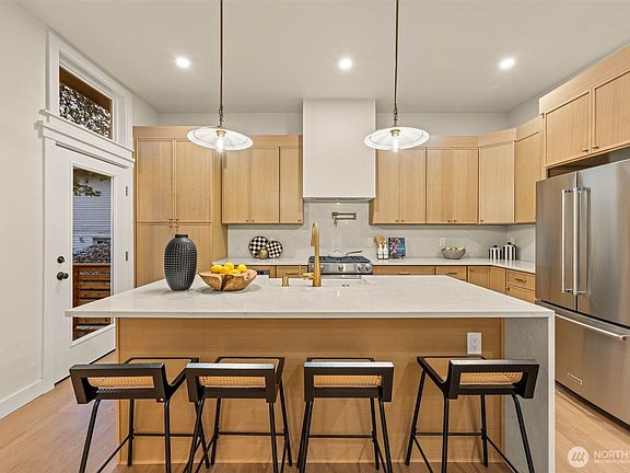 Perched in the heart of Cherry Hill, this timeless 1903 craftsman captures sweeping views of the Seattle skyline and iconic Columbia Tower. A true work of art, where every detail tells a story. It blends historic character with modern comfort- fully permitted remodel includes: new engineered hardwoods, windows, siding, plumbing & electrical. Upstairs features three bedrooms, including a sunlit primary suite, plus a main-floor office that easily lives as a fifth bedroom. Walkout basement with secondary access and the start of a second kitchen offer endless opportunities for guests, rental income, or multi-generational living. W/ a 93 Walk Score & secured garage parking - this is where design, history & urban living converge.