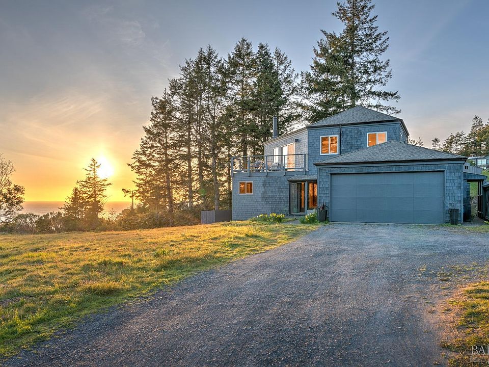 Panoramic white water Smuggler's Cove ocean views on a 0.67 acre double lot meets remodeled 2-bed/2-bath home with iconic Sea Ranch touches. The entire home features modern negative carbon footprint wood-look cork flooring. 1st floor boasts two heritage clear heart redwood-paneled bedrooms and updated en suites with ocean views. On this floor is a large open space for family gaming or media area, yoga, or creative space and (count em!) seven closets. Let your imagination run wild! The primary suite and bonus area have separate exterior access to walk the grounds. Grab the Donlyn Lyndon-inspired yellow hand rail and head upstairs to the eye-catching great room, which opens to three separate decks and features a remodeled kitchen boasting mid century-look vertically-placed Heath tile backsplash, two-tone oak base and matte white upper flat-front cabinets, cement look Caesarstone counters, a huge island for four, LG stainless steel appliances and a wine fridge and bar counter. Lots of mid-century details in the great room incl. Herman Miller lighting. Plenty of extra space with skylit workshop and att. 2-car garage with laundry. The setting on a large private lot invites to hikes North, East, West and South, bicycling and flying home to the airstrip in walking distance of house.