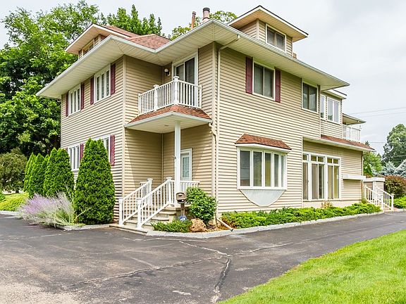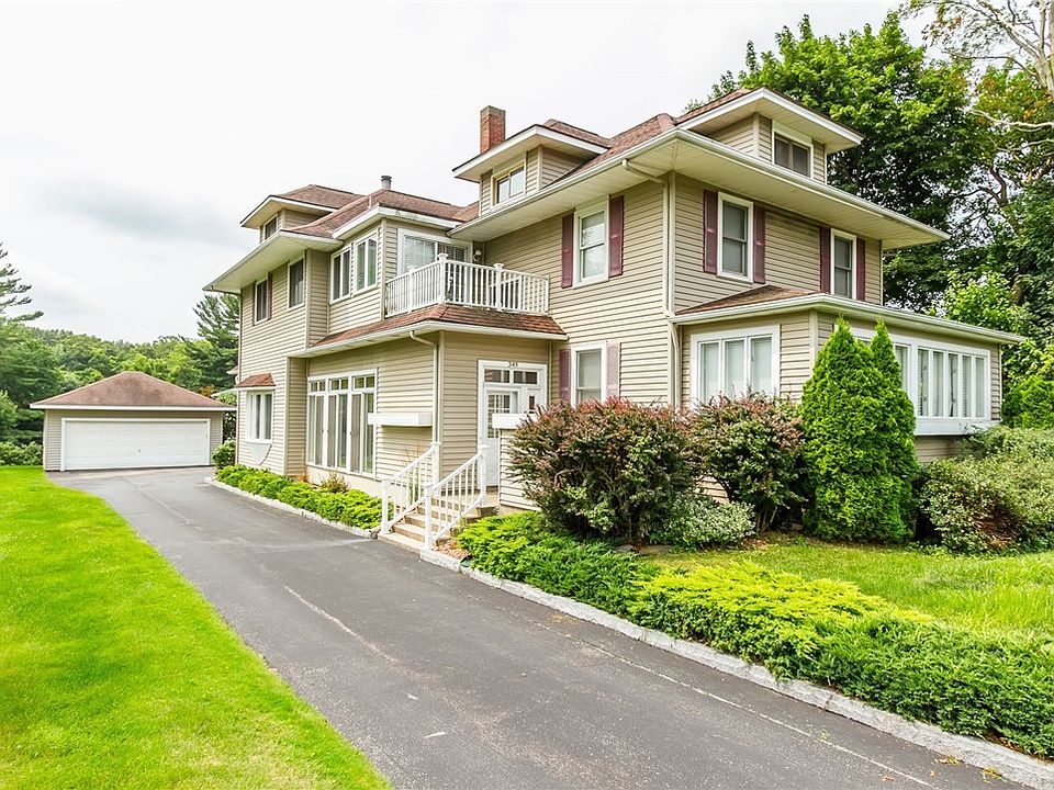 Lovely, 6 bedroom, 5 full baths sitting on over half an acre lot. High ceilings and natural light from the walls of windows welcome you. Large mudroom with ample storage leads into a sun filled room perfect for indoor plants and gardening. A green thumbs dream, complete with a wall mounted fountain faucet for watering. Large family room and living room flank the beautifully updated chef's kitchen. Granite countertops and backsplash, tile flooring, soft close cabinets and drawers, and stainless steel appliances. First floor full bath w/ laundry hook-up has been remodeled as well. The second floor consists of flex space, three bedrooms, a renovated full bath as well as the primary suite w/ updated bath and huge walk-in closet. Third floor consists of 2 more bedrooms and another full bath. The basement is finished with a full bath and offers a ton of storage. Outside you will find a large concrete patio, beautifully landscaped and surrounded by arbovitaes for privacy. A huge, flat yard and a two-car detached garage round out the exterior. Property is being sold as-is.