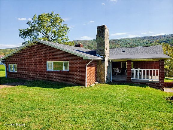 Welcome home to breathtaking mountain views! Bring your imagination and make this spacious all-brick ranch your own! Set on a gently sloping 2.86-acre corner lot this solidly built and cared for 5-Bedroom, 2.5-Bath home offers space, privacy and endless possibilities. The layout provides generous living areas; a huge Family Room features a stunning hand stacked stone wood burning Fireplace. The Eat-in Kitchen offers abundant cabinetry, newer dishwasher, electric cooktop and wall oven. A bright and spacious Living Room boasts gleaming Hardwoods. Three of the five bedrooms also have Hardwood floors. Large Private covered back porch, maintenance free railing and concrete floor is the perfect spot to relax. 3 car garage with tandem parking for additional cars plus parking in the driveway for several cars. A partially finished stone Fireplace on the LL is ready to finish and turn the room into additional living space. NEW ROOF 2023! Incredible potential. Close to major routes.