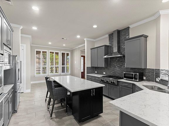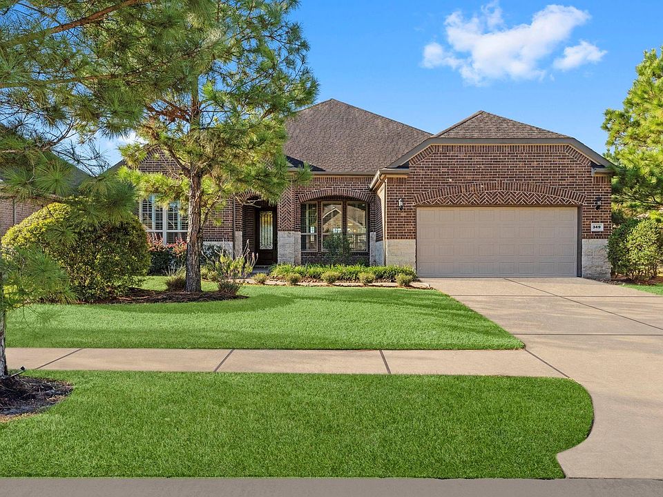 ENJOY SPECTACULAR WATER VIEWS! This rare 3-bedroom, 3-bath Tangerly Oak with Sunroom is nestled in Del Webb The Woodlands, a premier 55+ gated active-adult community. The open layout features a spacious island kitchen with breakfast bar, double ovens, gas cooktop, and plantation shutters in the breakfast area. The den, sunroom, and entry showcase engineered wood floors and abundant windows framing lake and fountain views. The primary suite offers tranquil water views and a large walk-in shower. Highlights include a laundry room with sink, drop zone, and ample storage. Enjoy a covered patio with outdoor kitchen and electric sunscreen shades, ideal for entertaining. The tandem garage fits 2 cars plus a golf cart with epoxy floors. Steps from walking trails and close to shopping, dining, hospitals, and The Woodlands Mall, plus resort-style amenities—pickleball, tennis, bocce, pools, fitness center, and The Lodge clubhouse.