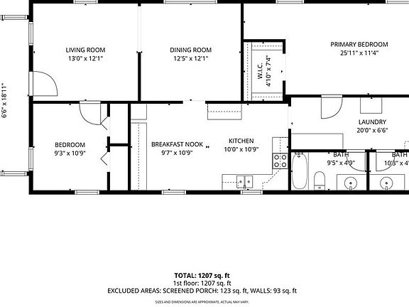 - Total interior livable area: 1,207 sqft
