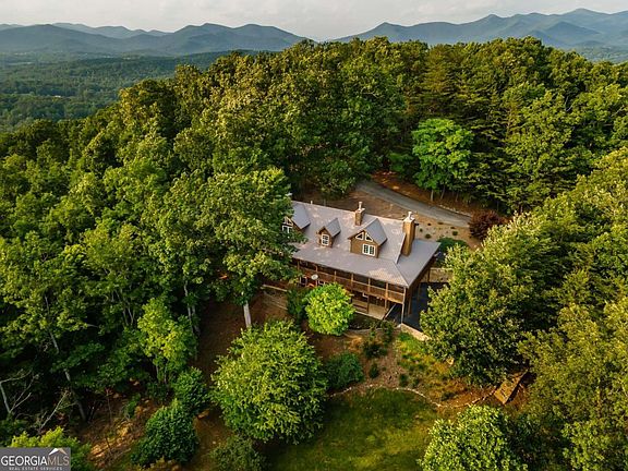 Imagine waking each morning to the quiet beauty of the North Georgia mountains, where wide-open skies and soft breezes set the tone for the day. This remarkable home rests on 1.25 acres of beautifully landscaped grounds, offering a rare blend of privacy, comfort, and mountain elegance. Built in 2000 and lovingly maintained, it welcomes you with a grand great room featuring vaulted ceilings, warm wood floors, and a striking wood-burning fireplace that flows effortlessly into a sunlit breakfast area and a gourmet kitchen with granite countertops. The main-level owner's suite is a peaceful retreat with tranquil mountain views, a spa-inspired ensuite, tile flooring, a laundry closet, and direct access to the screened and covered rear deck-perfect for morning coffee or watching the sun fade behind the ridges. Upstairs, two beautifully designed ensuite bedrooms offer their own charm: one with a gas fireplace, designer tile, a soaking tub, and heated floors; the other with a vaulted ceiling, wood-burning fireplace, and rustic barn-style door. A bright sunroom provides the perfect spot for a home office, playroom, or optional fourth bedroom. Downstairs, the partially finished terrace level includes a full bath, ample workshop or storage space, and an oversized double-bay garage with generous parking. Modern updates include dual HVAC systems, a durable metal roof, and two tandem climate-controlled garages accommodating up to four vehicles. Surrounded by wrap-around covered porches, screened decks, and gently rolling terrain, this home invites you to slow down, breathe deeply, and savor every moment-a place where the views never get old and each day feels like a getaway.