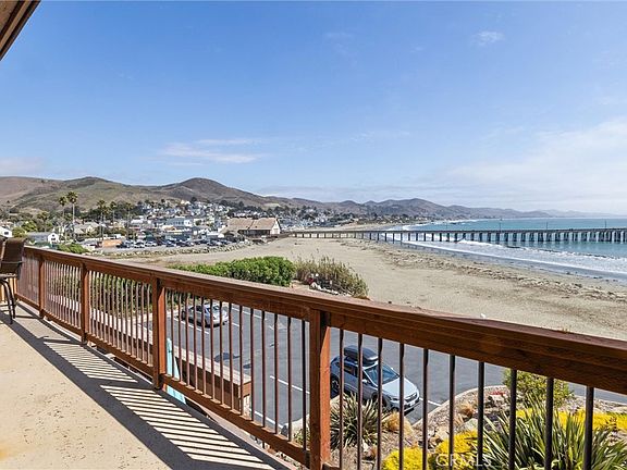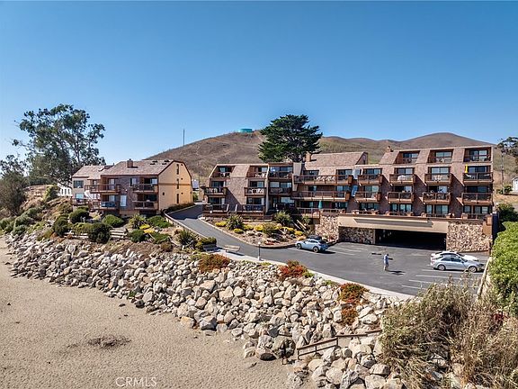 Stellar Oceanfront Condo with Sweeping Coastal Views. Enjoy stunning panoramas of Estero Bay, Morro Rock, the pier, and Cayucos from this sought-after oceanfront complex with private beach access. This thoughtfully designed condo maximizes space with an efficient floor plan and easier access than upper levels. The open-concept great room flows seamlessly to an expansive oceanfront deck of over 300 sq. ft.—perfect for outdoor living and entertaining against a backdrop of ever-changing ocean views. The kitchen offers generous counter space and a custom pantry cabinet, while the adjacent living area provides direct access to the deck. An inside storage closet is conveniently located nearby, ideal for beach and deck essentials. The primary bedroom includes sliding-door access to the ensuite-style bath and opens directly to the deck for morning coffee with a view. A second entrance from the hall makes the bathroom easily accessible for guests and the additional bedroom. With its spacious deck, prime location, and smart design, this condo is a rare opportunity to embrace the best of coastal living.