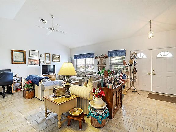 Beautifully maintained 2-bed, 2-bath villa in the desirable 55+ Kings Isle community. This inviting home features a brand-new roof for lasting peace of mind. Inside, vaulted ceilings, tile flooring, and a bright open layout create an airy feel. The kitchen offers generous cabinet space and natural light from large windows. A cozy dining area flows into the screened lanai—perfect for morning coffee or entertaining. The spacious primary suite boasts a walk-in closet and en-suite bath with step-in shower. A versatile second bedroom and full guest bath provide space for family, hobbies, or an office. Just steps from Kings Isle’s resort-style amenities, this villa blends comfort, convenience, and lifestyle in one perfect package.
