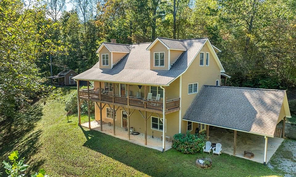This 3-bedroom, 3-bath custom-built home showcases quality craftsmanship & thoughtful design throughout. Situated on approximately 1.5 acres, it offers generous yard space & is just a 5-minute walk to the Cullasaja River—ideal for fishing, tubing, kayaking, & more. The property also provides easy paved road access to the driveway & is only about 12 minutes from town. Inside, vaulted ceilings, rich wood finishes, hardwood floors, & a stone gas-log fireplace create a warm & inviting atmosphere within the open floor plan. The main level features an en-suite bedroom, a spacious laundry & mudroom with a utility sink, & a beautifully appointed kitchen with granite countertops, custom cabinetry, under-cabinet lighting, a gas range, & abundant storage. A second ensuite bedroom is located upstairs, complete with a soaking tub & separate shower. The lower level offers a private studio-style guest suite with a full bath, bedroom area, living room, wet bar, patio access, & its own exterior entrance. An adjacent workshop/storage area adds even more versatility! Other notable features include expansive decks, a storage shed, an attached carport, & sweeping mountain views!