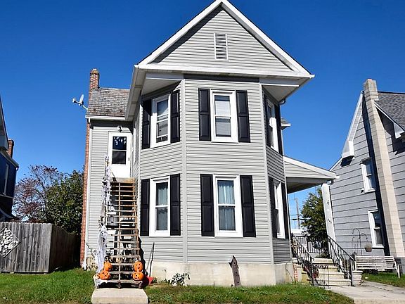 Two units with 2 bedrooms and 1 bath each. 1st floor unit has large kitchen and main bedroom, main level washer and dryer hook ups. Access to basement for storage. 2nd floor unit has washer and dryer hook ups plus access to attic for storage. Building has newer siding and some replacement windows. Tenants pay all utilities except trash. Potential additional rental income from garage. Or live in one unit and rent the other. NOTE: The property could possibly be converted back to a single family residence as the interior stairs are still in place.