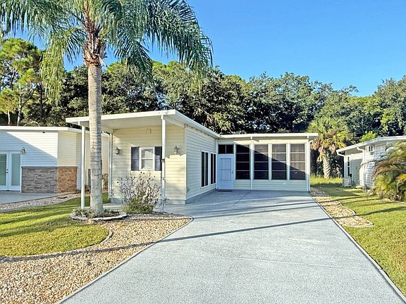 Resort living on a championship golf course. Over 600 ft.² executive suite on a private lot with nature views. 50 amp full RV hook up. This home has tile floors and 9 foot ceilings. Separate laundry room ,huge bathroom with elongated zero entry shower. Extra storage inside and out. The HOA is loaded with bonuses. $359 a month includes water, sewer, complete lawn care ,great cable TV with DVR, high-speed Internet, roaming security guard and gated access. There is a restaurant/bar, tennis and Pickleball courts, doggy world, library, and nature trails. 42 minutes to Orlando airport. 44 minutes to Disney World. 32 minutes to Port Canaveral cruise terminal and an hour to Daytona Speedway.Located in an exclusive gated community with a championship 18-hole golf course and many amenities including on site restaurants/bar, pickleball and tennis courts, 2 heated po ols, 2 hot-tubs, fitness center, you can live in a care-free lifestyle where the low maintenance fees covers complete lawn and sprinkler system maintenance, 24-hour attended guardhouse with roamingCourtesy Patrol; water & sewer included; Spectrum internet cable DVR, daily trash pickup, miles of nature and walking trails, Doggie World, planned activities; Internet and cable tv, and an exchange library!! Centrally located on Florida's Space Coast and a short distance to KennedySpace Center, Port Canaveral Cruise Terminals, Canaveral Sea Shore, Beaches, Orlando theme park attractions, Daytona Speedway and Orlando International Airport.