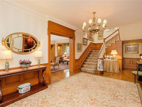 349 Pondfield Road, a classic and very coveted red brick Georgian Colonial, is one of the most stately and gracious properties in Bronxville Village. Situated on almost an acre of level property between Manor Road and Courseview Road, the home was built with incredible care and craftsmanship. Designed in 1919, the home offers gracious proportions for sophisticated living but also wonderful flow, light and comfort for the modern family. High ceilings, marble fireplaces, wide plank oak floors, hand set moldings and old world architectural detailing abound throughout this fine home.