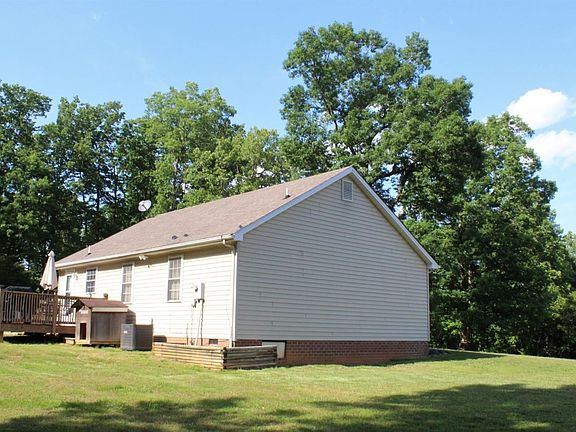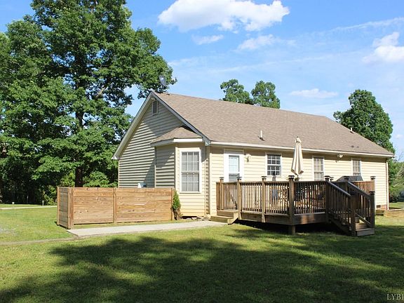 Nestled on over an acre in a quiet but convenient Rustburg neighborhood. When you enter this delightful 2 bedroom/2 bath home you will notice the open, airy feeling from the vaulted ceilings and open living concept. Spacious kitchen with ample cabinetry. Eat-in dining in the cozy bay window. Master bedroom has a bathroom en-suite. Each bathroom shares the shower/tub combo. Laminate flooring in the main living areas, including the kitchen/dining area. Nice neutral carpet in the bedrooms. Heat pump, well pump, hot water heater all new in 2016. Refrigerator installed in 2018. Built in 2017, the back deck with steps to the private rear yard is a wonderful space for entertaining friends and family. All appliances convey, including washer and dryer. Want to know the best part? This is the perfect home for those seeking one-level living! Shows beautifully and is ready for the new family.