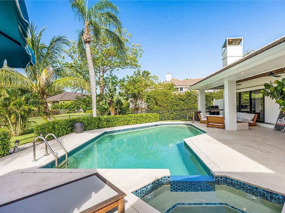 Private poolWalnut accentsQuality updatesLakefront homeVaulted ceilingsSpa-inspired bathShell stone floors