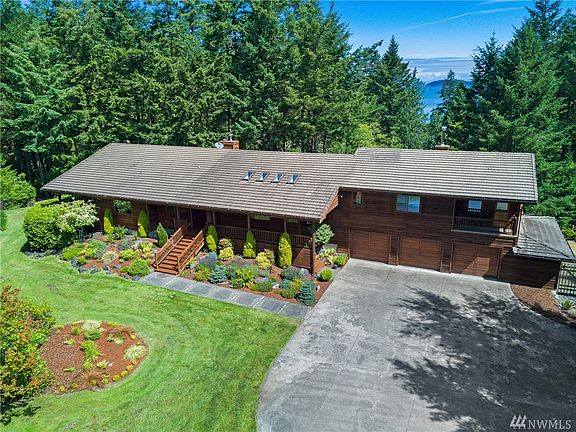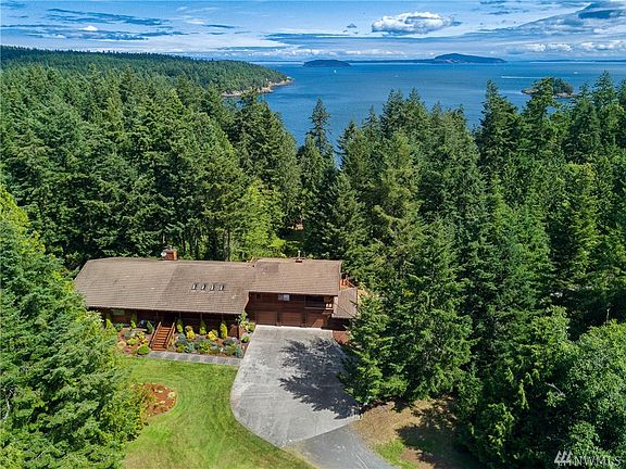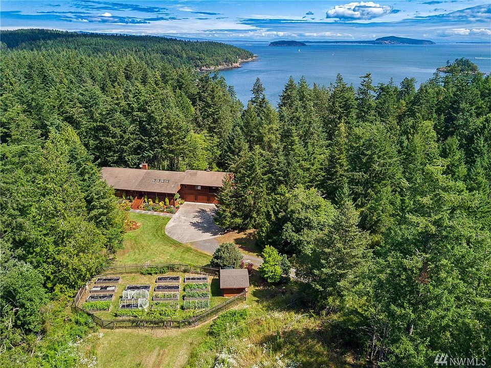 Beautifully appointed, spacious home w/4548+/- sq ft including 5 beds, 4 bths, rock fireplace in great room & fireplace in main bedroom. Large bonus room & office, hot tub, paved drive & 3 car attached garage. Huge decks for entertaining w piped propane for heaters & BBQ, gourmet kitchen, temperature-controlled wine cellar. 5+/- acres w focused view of San Juan Channel. Complete privacy w raised bed fenced irrigated garden, fully landscaped, pond and small greenhouse. Community beach access