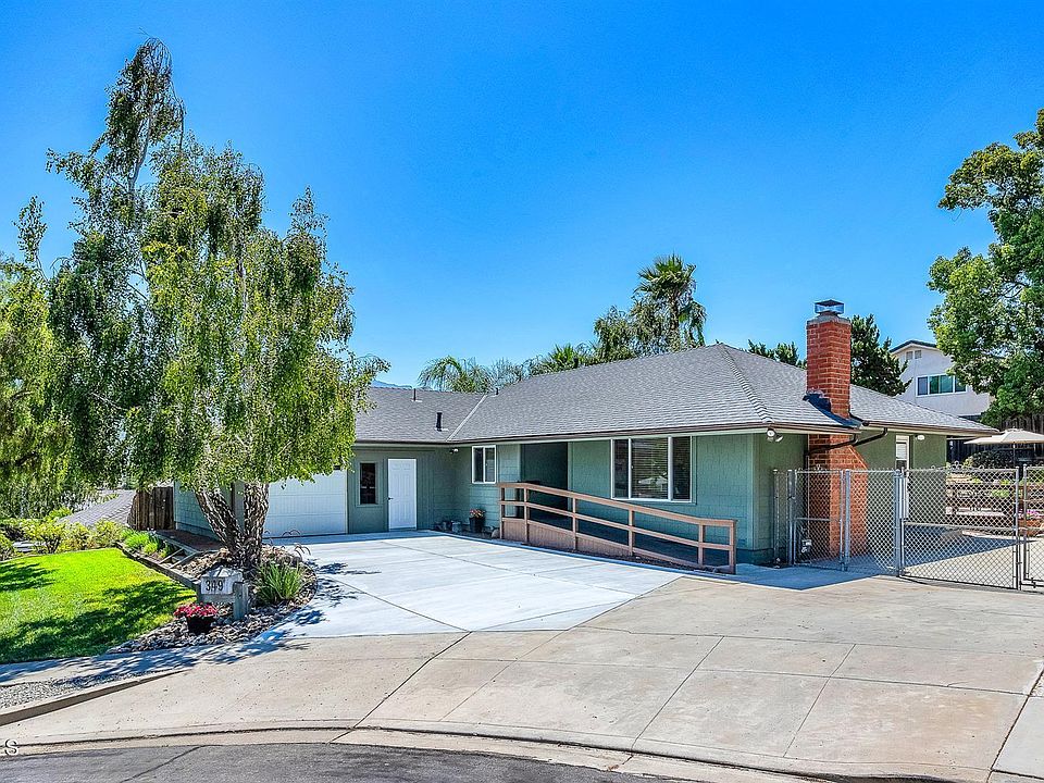 Charming single-story home in a Newbury Park cul-de-sac! This 3 bed, 2 bath residence features original hardwood floors, smooth ceilings with recessed lighting, and dual pane windows for energy efficiency. The remodeled kitchen offers granite counters, stainless steel sink, electric range, and a stainless steel refrigerator that is included. A spacious living room with a wood-burning fireplace (gas starter) and dining area opens to a backyard deck for seamless indoor-outdoor living. The primary bedroom includes an en-suite bath with tiled shower, while the hall bath maintains its original charm with a refreshed look. Fresh paint, ceiling fans, and central HVAC enhance everyday comfort. A wide gated concrete side pad provides versatile space for extra parking, storage, or projects. The attached garage features built-in cabinetry and laundry hookups (gas dryer). Outdoors, enjoy an expansive backyard with room to garden, play, or relax. Close to parks, award-winning schools, shopping, and hiking trails—this move-in ready home combines comfort, upgrades, and location!