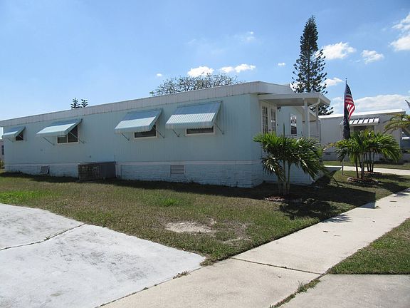This home has many improvements, done by a craftsman perfectly. There are 5 windows replaced with Hurricane impact glass. There is ceiling fans in all rooms for your comfort and laminate flooring throughout This home also has central air and heat This park is one of the premier parks in Melbourne. I even live here because it is a great place to live. Also it does come with quality furniture. Let's go inside. The kitchen has all new cabinets and plenty of counter space. It has a stainless-steel sink with all new fixtures, new plumbing to sink, new back splashes everywhere, custom pendant light over sink, fridge with water and ice maker, separate pantry with pull out drawers, more counter space and drawers. There also is a sliding door with new vertical blinds to the car port. You will love cooking in this kitchen with friends and family. The dining room has a built in buffet, dimmer switch, window dressings. It also is furnished with new large glass table and 4 chairs. The living room is large great for entertaining and the Holidays. Combo carpet and laminate floors "Very Unique." New French doors with new vertical blinds out to front of house. Quality new furniture, 75-inch TV with entertainment center with fire place, window dressings. The hall bathroom is a shower tub combo with new commode. The shower and tub were just re-glazed and looks new. The guest bedroom is a good size and fully furnished with closet. The laundry room contains washer and dryer How convenient not to wash and dry laundry outside. The hallway has another pantry, linen closet and storage closet. The Primary bedroom is large and furnished. The primary bathroom has a nice vanity, walk - in shower and walk-in closet. The shower was also re-glazed and looks new. The shed is a good size for storage. Sorry no photos to full of tools. This a great place to live take it from me, I know all the parks in the area. This is a 55+ park and the seller requests cash only. You will be close to medical facilities, beaches, entertainment, fine dining, fishing, all the shopping you would ever want and so much more. Don't forget the heated pool and all the amenities and activities.