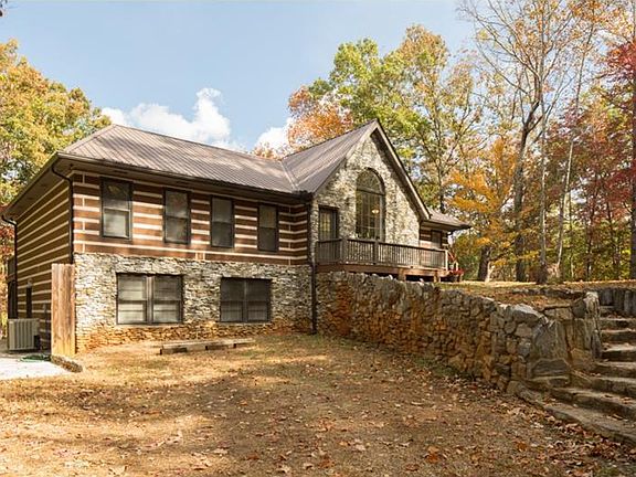 YOUR SECLUDED RETREAT but just minutes to picturesque wineries just over the Lumpkin County line in White County. This hilltop log & stone home is your refuge on 10 wooded acres and no close neighbors. Cheerful, renovated kitchen, dramatic living room with stone fireplace plus,seasonal mountain views. 3 bedrooms, 3 baths, plus a finished basement with 1 bedroom, l bath, exercise room,& office.
