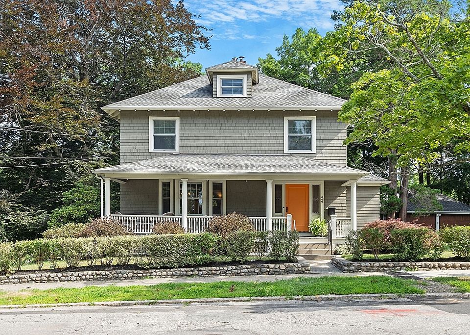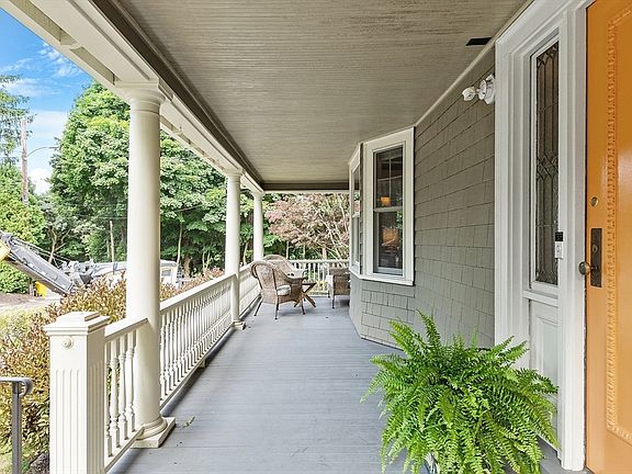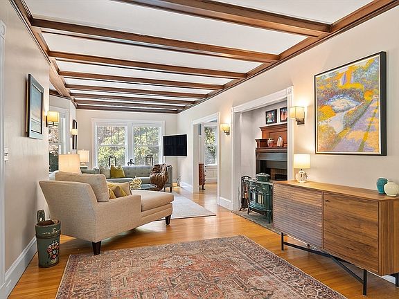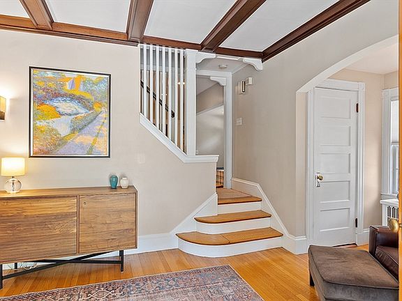 This home is perfectly set, from the inviting front porch, to the views of the Fells, to the beautiful scale and architectural detail, to the private rear yard, all exuding elegance paired with a welcoming vibe. Entertaining is effortless, with sunlight pouring in, illuminating the main level, and the circular flow allows for mingling. Even snow days are magical, like living in a snow-globe! Gorgeous detail abounds, from the bay window, wood stove that warms the entry and living room, to the dining room wainscoting with plate rail, to the beamed ceilings and the thoughtfully designed kitchen with dining peninsula and fabulous storage. The second lvl hosts 4 BRs (one without a closet offers access to substantial attic storage), while the LL den is a great gathering space/office. Exactingly maintained, the updates are many. Sited by the Fells and nearby the Farmer’s Market, Cedar Park train/shops, downtown amenities, & major routes, this home boasts ambiance, setting, scale and location.