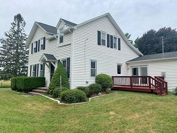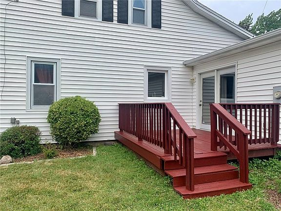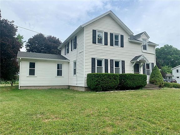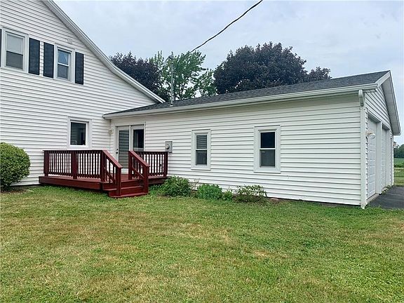 Must see 4/5 Bedroom Farmhouse with 2 bathrooms, 2 car attached garage, vinyl siding, huge country kitchen with vaulted ceiling and located on a beautiful country lot. Spencerport schools and electric. 3 bedrooms and full bath upstairs. 1st floor has master bedroom with ceiling fan and double closets, full bathroom, laundry room, living room and large entry way from front door. 1st floor office or 5th bedroom located by the walk-in pantry off of kitchen has separate entrance from garage. 2 car attached garage also has shelves and extra room for storage.