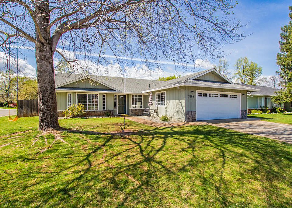 Love your location! This charming and inviting 4 bedroom home is vaulted and open with shiny plank flooring, bright and light filled with large/Bay windows. Kitchen has breakfast bar, corner sink and ample storage. Indoor laundry, master with walk-in closet, covered patio, gardener's shed all on a corner lot with ample room to add RV parking.