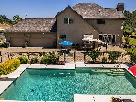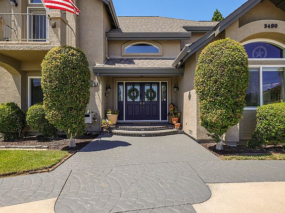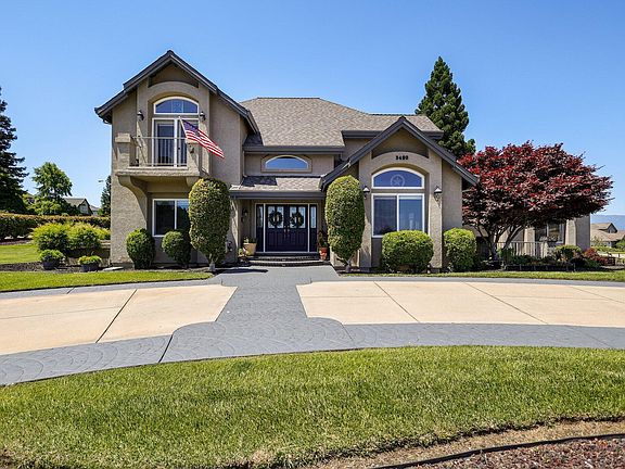 Stunning estate-sized home on Redding's desirable westside, set on a large corner lot. Features a sparkling inground pool, immaculately maintained grounds, and a circular drive. The interior boasts soaring ceilings, separate living and family rooms, gorgeous hardwood floors, and large view windows. Gourmet kitchen with quartz countertops, double ovens, stainless steel appliances, and a large center prep island with sink and storage. The primary bedroom offers a private balcony and spacious ensuite bath with double sinks, soaking tub, and separate shower. Custom finishes throughout blend luxury with modern convenience. Enjoy your coffee by the pool or on the large back patio under mature redwood trees. Boat/RV parking included.