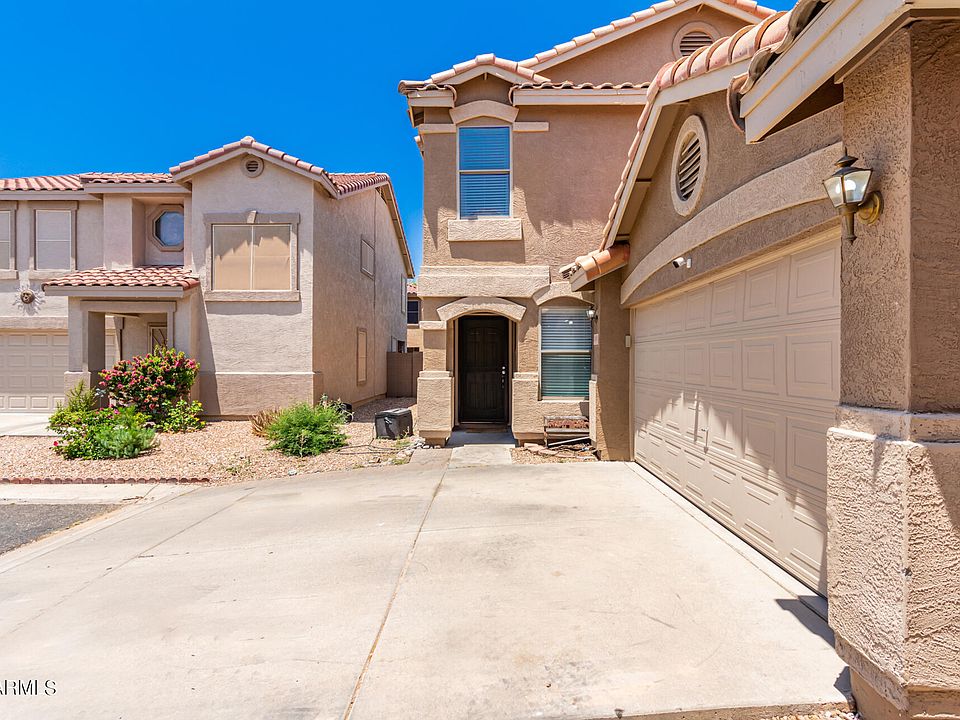 Welcome to this charming two-level property located in the Arizona Goldfield Community! Explore inside to find a perfectly flowing layout showcasing gleaming wood-look floor, a neutral color palette, & sliding glass doors merging the indoor with the outdoor living. The immaculate eat-in kitchen boasts white shaker cabinets with crown moulding, stainless steel appliances, a wine fridge, sleek quartz counters, a stylish tile backsplash, recessed lighting, & convenient pantry for all your cooking essentials. Enjoy additional living space with the versatile loft! The primary bedroom offers a private bathroom with dual sinks & a walk-in closet. Spend relaxing afternoons in the quaint backyard featuring a covered patio! Don't miss out on this one!