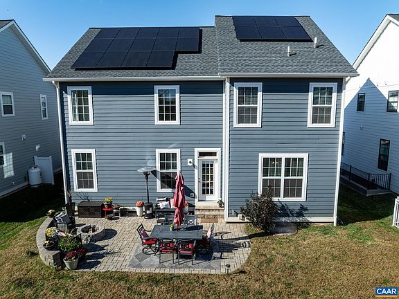 Don’t miss this opportunity to own one of the best-positioned lots in Phase 1 of North Pointe! Perfectly sited to capture Blue Ridge Mountain views, this home offers walkable access to multiple community amenities and features a welcoming, deep covered front porch. Inside, soaring ceilings fill the great room and open gourmet kitchen with soft natural light. Tasteful finishes and thoughtful design choices include stunning granite countertops, a farmhouse-style stainless-steel sink, and a window-wrapped dining area—all complemented by the warm low-maintenance LVP floors.The seamless indoor-outdoor living experience continues with a pavestone patio featuring built-in wall seating and a fire pit, perfect for entertaining. One of the home’s standout features is the private primary suite, offering a peaceful retreat from the main living areas. Large walk-in closets in the bedrooms provide excellent storage. Downstairs includes a large family/media room, bedroom, full bath, plus an unfinished fitness room. The popular Kempton floor plan's Pearl Certified Gold energy efficiency/ 64 HERS rating is further enhanced by additional solar panels on the rear roofline. Super convenient to NGIC, Rivanna Station, CHO Airport & UVA Discovery Park.