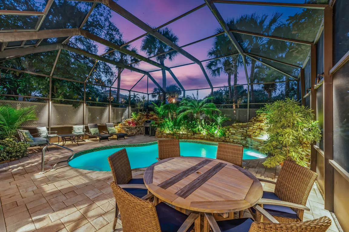 Heated private poolTwo-story floor planTwo primary suitesExpansive screened lanaiPrivate tropical sanctuaryFreshly painted interiorsOpen-concept layout