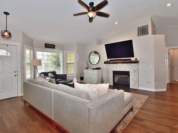 WOW!! Another price reduction…. ($25,000) off original listing price. You have to see this adorable house that is waiting for a new owner to enjoy and call it home. You will love this beautifully updated single-level family home by Lakeview Golf Course. Nestled on a generous 8,276 sq ft corner lot, this home offers 3 spacious bedrooms and 2 full bathrooms, with a layout that is both functional and comfortable. The master suite features dual vanities and a walk-in closet. Both additional bedrooms are perfectly sized for family or guests. Enjoy a seamless open flow with a great room, gas fireplace, and a kitchen equipped with ample storage, essential appliances, and a granite island for cooking or entertaining. Additional perks include a brand-new roof (2025), fenced backyard, central A/C, and a large 3-car garage (33.6' × 22'), along with additional storage in the attic of the garage. This all blends functionality with comfort. Located within walking distance to Lakeview Golf Course, Ponderosa Elementary, and conveniently close to Meridian Middle and High School, this home captures the best of community, convenience, and affordability.