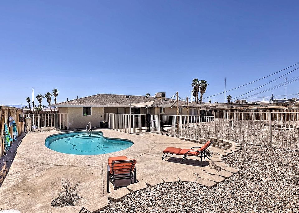 People, it's ready!!!! 7 months of hard work has paid off. Every single thing inside this house is brand new, furniture, toilets, paint, art, sinks, carpets, vinyl flooring, kitchen cabinets, shower door, beds, 2 person shower, water filtration system in kitchen......I can keep going for days. I bought this place in November and have completely redone the inside. We are selling it because we live almost 3 hours away and just cannot enjoy it like we thought. Please come check it out and fall in love!! Huge backyard ready for your creativity to run wild and a pool!!!! filters just got replaced in may. comes with a washing machine and dryer and the house has a water softener already installed. Ring doorbell and security cameras on each porch. Fully fenced backyard, 2 car garage, huge driveway, rv parking, boat parking, safe and quiet neighborhood, lots of retiree's. New wifi garage door opener installed 4 weeks ago, all appliances, look at the guest shower, 2ftx2ft tiles to the ceiling!!! Perfect vacation home for my northern folks trying to find an escape for those cold winters. I encourage you to look at other houses in the area and look at the kitchen cabinets, look at the old tile floors and the tired bathroom counters and shower doors, yuck! Not this place! I can list a 1000 things to do in Havasu but if your looking at this listing right now you already know why you chose this place! No bad days. Give us a shot, it's free to look isn't it?
