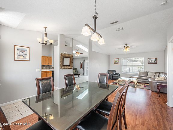 Sun-filled 3 bed / 2 bath with heated salt water pool nestled in the prestigious Bel Aire Palms. Recent upgrades include 2021 roof, 2024 AC and 2022 solar panels. Inside, you'll find an open floor plan with vaulted ceilings, skylights, split bedrooms, and tile / laminate throughout - no carpet. The eat-in kitchen features wood shaker cabinets, breakfast bar, and tile backsplash. Spacious primary ensuite offers a walk-in closet, 60'' vanity, and direct pool access. Entertain all year long in your oversized screened patio with in-ground heated salt water pool and hot tub. The fully fenced backyard sits on a corner lot offering extra space and privacy. Fantastic central location! Minutes to Florida Tech, Downtown Melbourne, the beach, shopping, restaurants, golf, and parks.