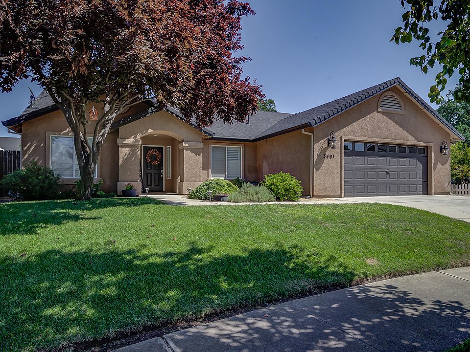 This well maintained 4-bedroom 2 bath home is nestled at the quiet end of a cul-de-sac. It features newer roof, granite counters, updated appliances, plantation shutters throughout, vaulted ceilings, offering a fresh and stylish interior. The split floorplan adds to the sense of privacy, with a cozy living room fireplace complemented by elegant crown molding. The master bathroom featuring a Jacuzzi tub, double sinks, and a generously sized walk-in closet. A must see!